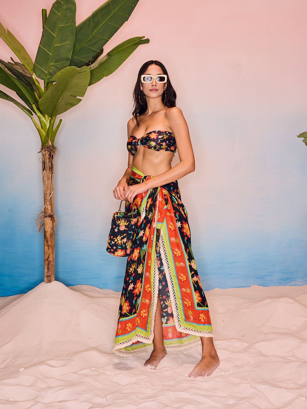 This effortlessly draped sarong look goes beyond the beach and into the city with its versatile features. Bold print with neon borders; you can dress it up for a night out or just use it as a cover-up for the perfect beach glam avatar.