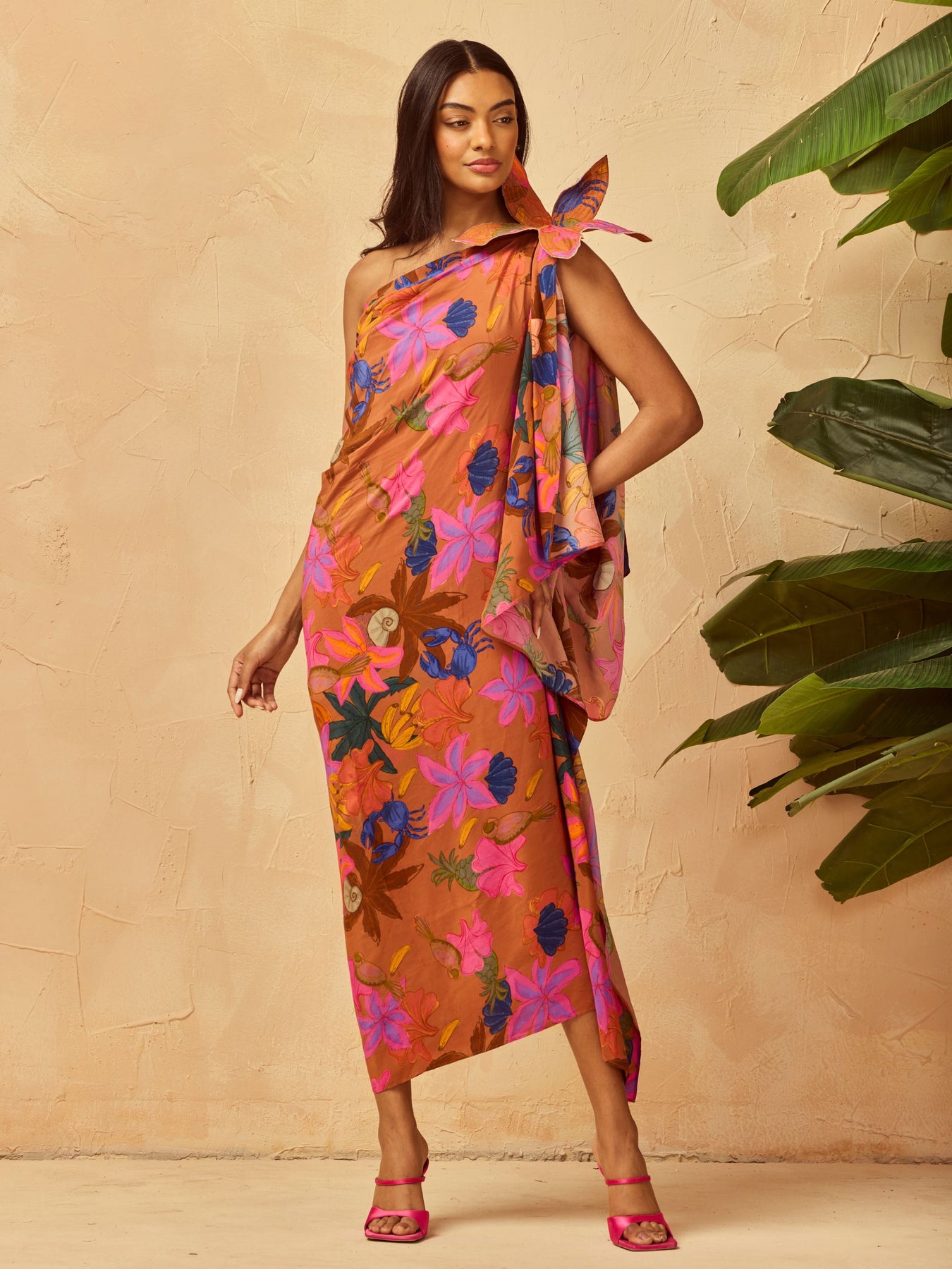 Tropical prints and hand-drawn motifs unfold in a palette of blue, terracotta, ivory, and sand, punctuated with the signature “Love the Guapa Life” detailing. Versatile separates and fluid wraps are designed to mix effortlessly, moving from beach to city with understated ease.
